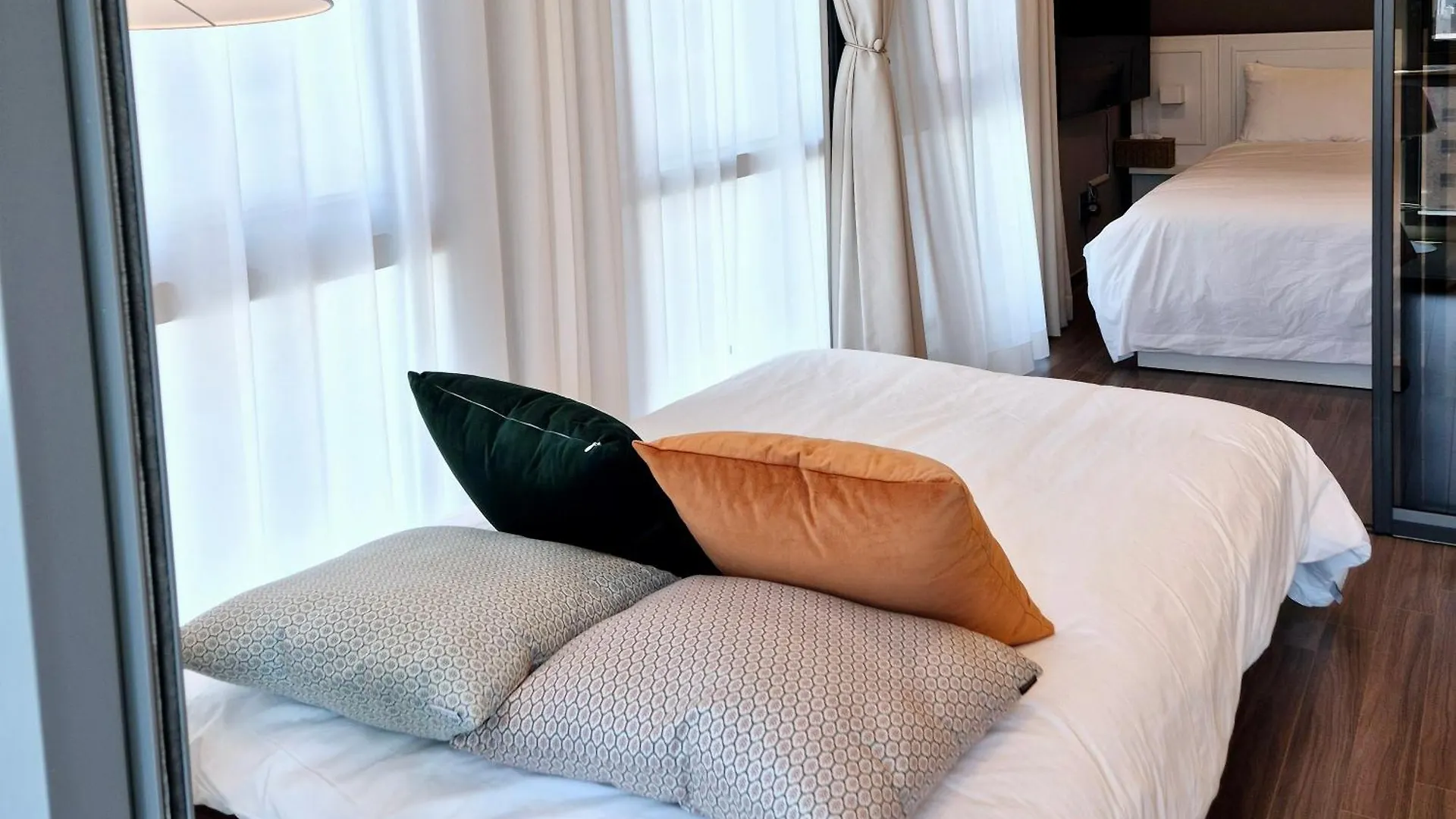 The rooms comprise a balcony complete with an iron with ironing board and air conditioning, as well as a flat-screen TV with satellite channels. Also, the Haeundae Family Hotel Arbol Sunny#Ocean View provides rooms with an electric kettle, a fridge, and glassware. A separate toilet and a shower, along with a hairdryer and bath sheets, are featured.